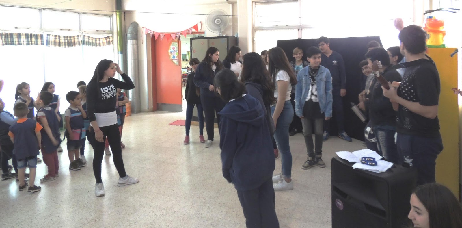 Después de la presentación de las dos obras, los alumnos de 1° año Turno Mañana compartieron una canción junto al Prof. de Música Kevin Titionik.